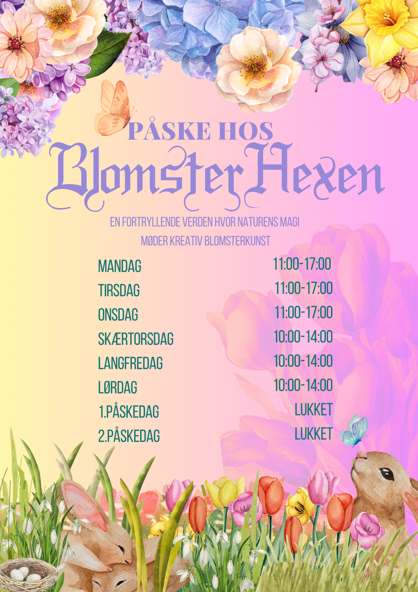 Påsken nærmer sig, og vi er klar med forårsmagi, friske blomster og unikke påskebuketter — skabt med kærlighed og blomsterheksens eget håndværk.